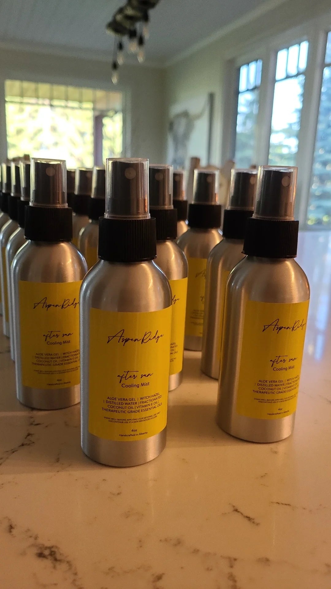 • 4oz After sun cooling spray, made with aloe vera gel and essential oils. Cools and refreshes tired skin after a day outdoors