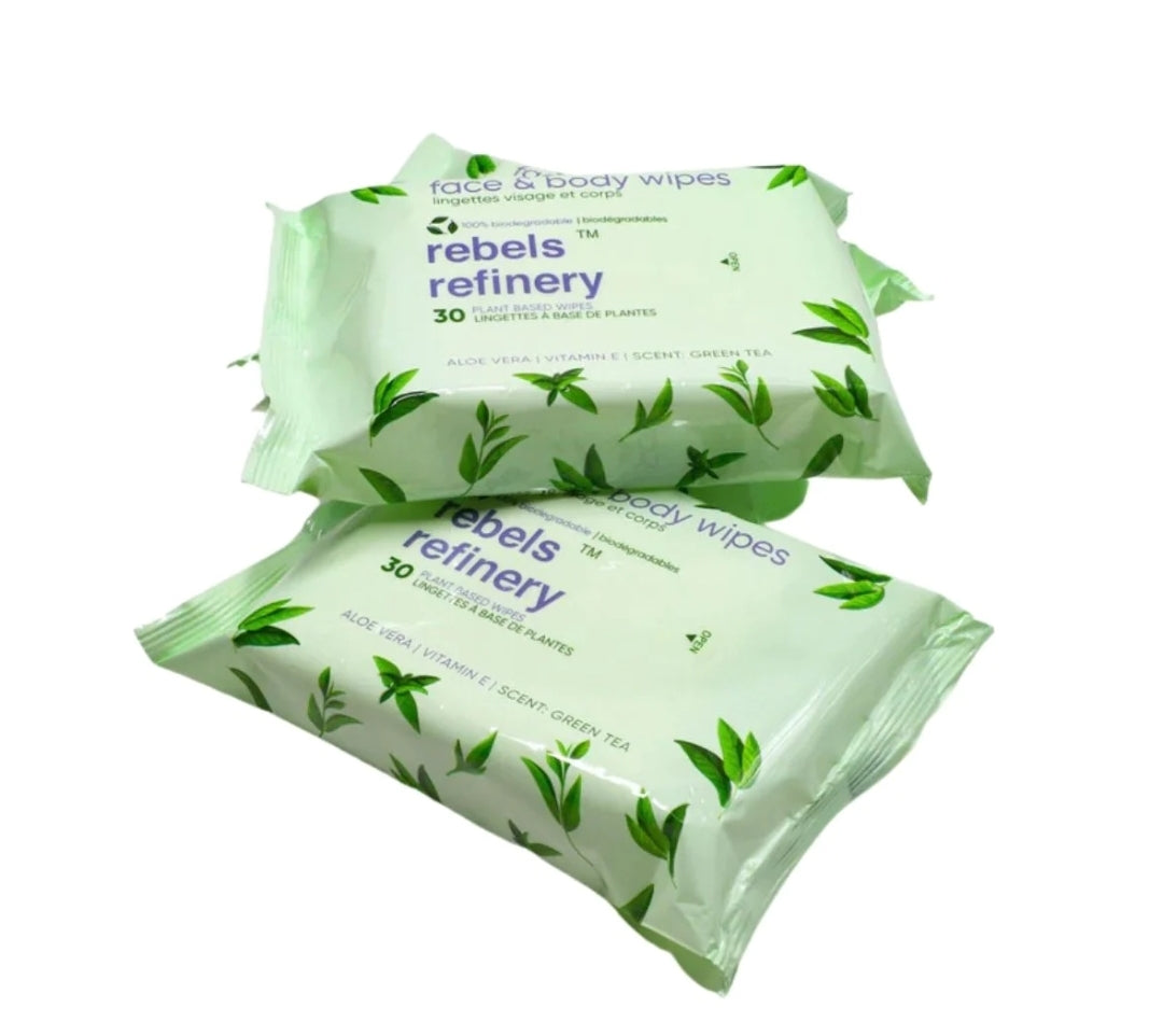 •A 30pk of biodegradable wipes, containing aloe vera and vitamin E oil. Toss them in your purse or keep them in your car, perfect for a quick refresh or to wipe those sticky ice cream fingers